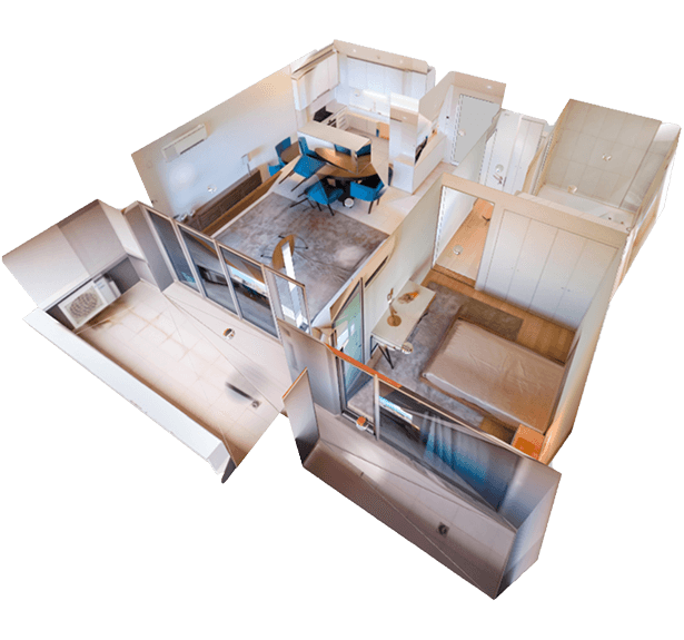 O apartamento T1 que aqui se descreve, com áreas de entre 133 m2 a 148 m2, é composto por uma sala, cozinha open concept, uma suíte, um WC e uma sala de arrumação, sendo que o quarto e sala têm acesso a varanda. O apartamento tem dois lugares para estacionamento residencial privado.