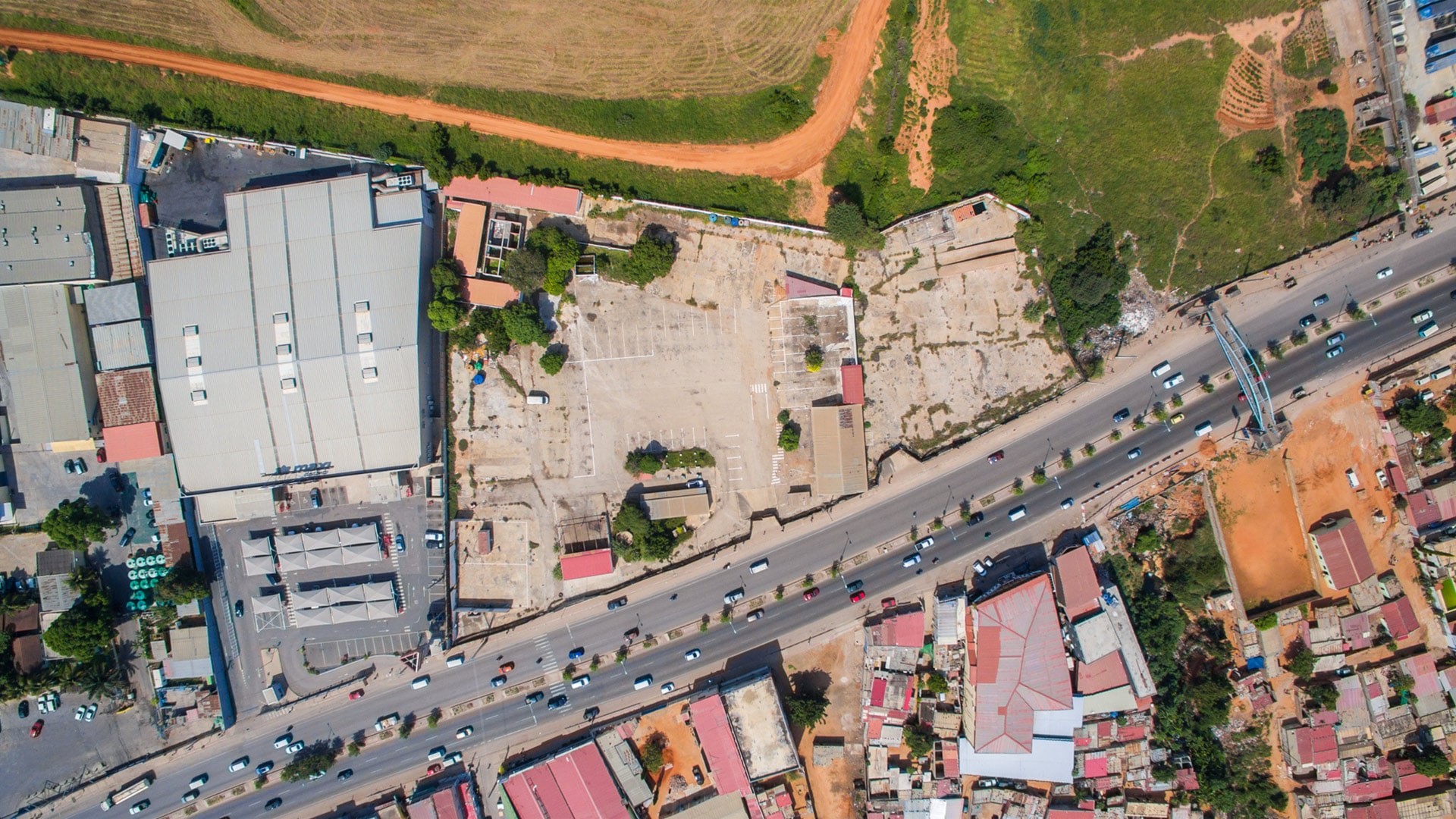 Situado na Estrada do Rocha Pinto, uma das vias principais de ligação do centro de Luanda à zona Sul da cidade, este terreno está rodeado de diversos estabelecimentos comerciais e beneficia da exposição ao grande fluxo de pessoas que percorre esta via.